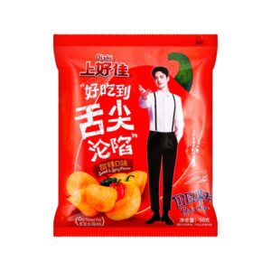 Zutaten: Kartoffel, Pfianzenöl, Zucker, Tomatenpulver, Salz, Essbare Glukose, Mononatriumglutamat, Essigpulver, Essbare Essenz, Säureregulator (E330), Geschmacksverstärker (E635), Farbstoff (E160c)